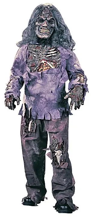 This Will Scare The Pants Off Anyone!Costume includes: top and pants with sewn in body parts, zombie mask with wig and zombie gloves.Available sizes: