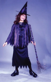 For A Dressy ‘Haunting Affair’Costume includes: Dress with zig-zag edge, metallic web belt and cape with spider medallion clasp. Includes a metallic web witch hat.Available sizes:
