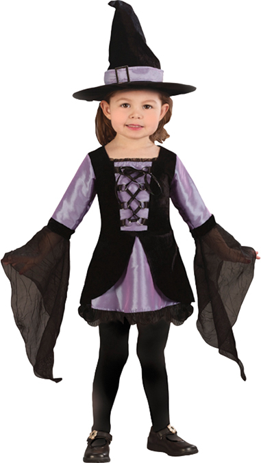 Sweetie Witch Is A Magical Treat!Costume includes: Drop sleeve dress with traditional tie up look front and matching witch hat.Available size: