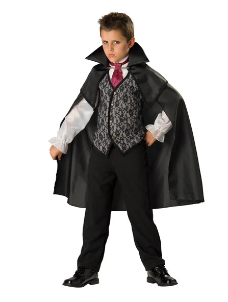 Costume includes:Cape, pants, vest with attached sleeves, collar and tie.